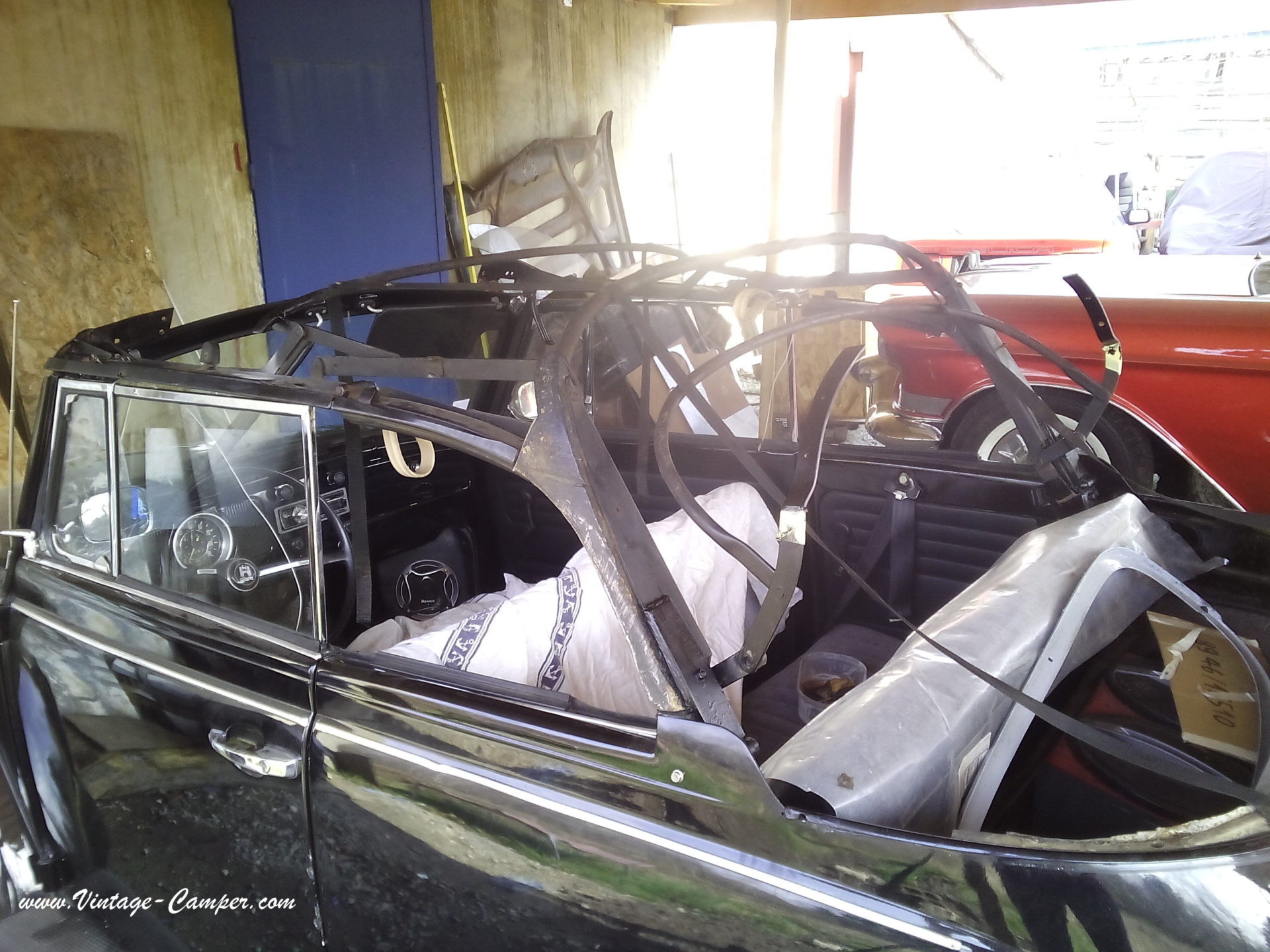 réfection de la doublure et pose de la nouvelle capote