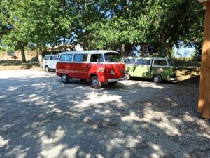 Nos vans T2 vintage sont restés tranquillement à l’ombre, profitant ainsi du paysage et de la beauté du domaine pour souffler un peu.