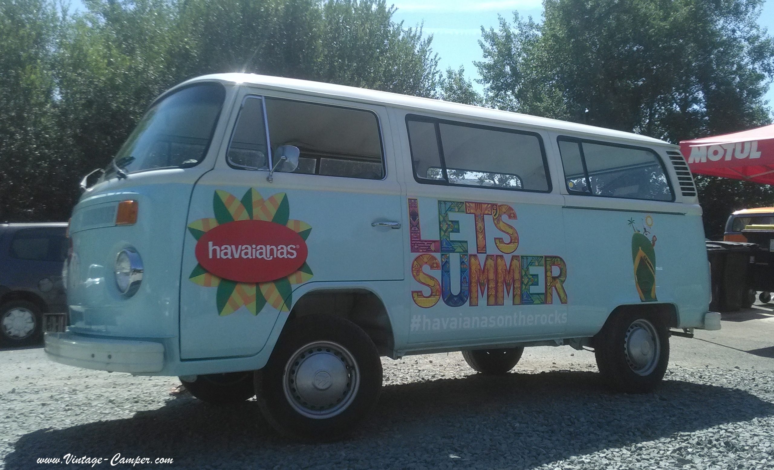 Vintage Camper Bordeaux a fait sticker ce combi par la société Laser déco à st jean d’illac pour le louer à la célèbre marque de claquette « havainas » pour le festival de musique Calvi on the rock en Corse!