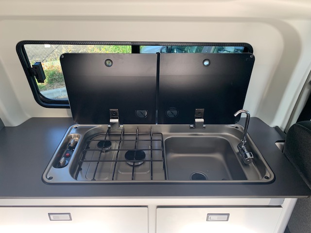 Une kitchenette est également présente à l’intérieur, avec gaz, évier et frigidaire.