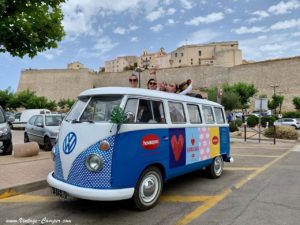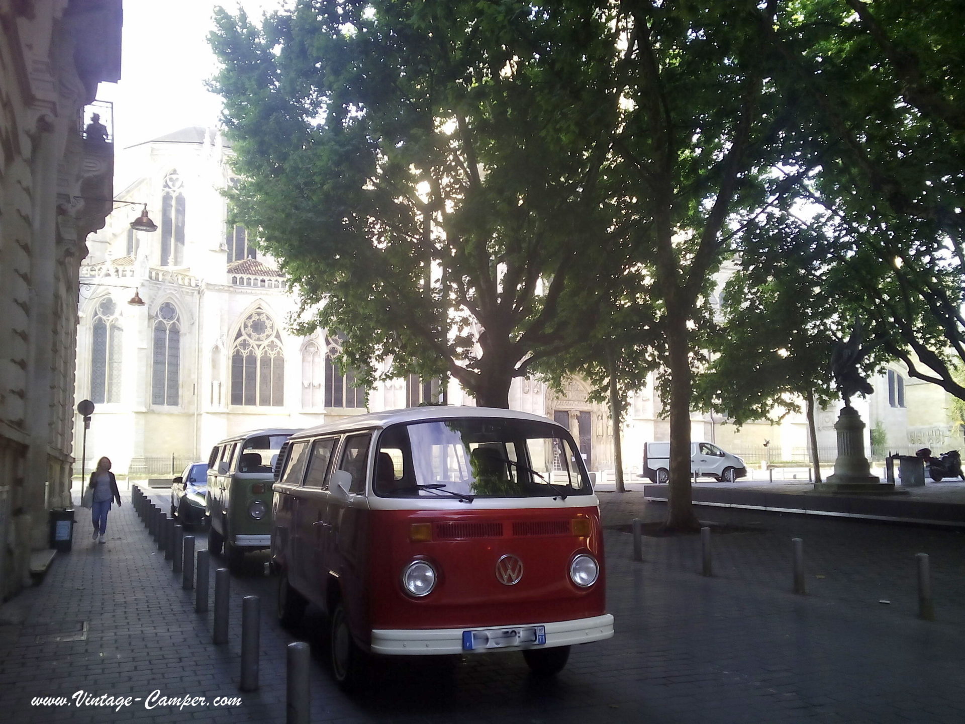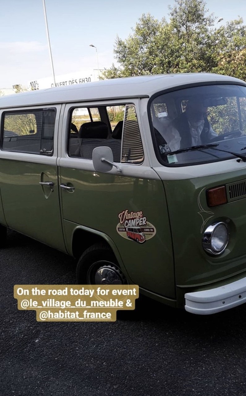 Journée transport d’entreprise! 2 minibus volkswagen vintage attendant 15 « influenceurs » pour les magasins Habitat France au centre de Bordeaux