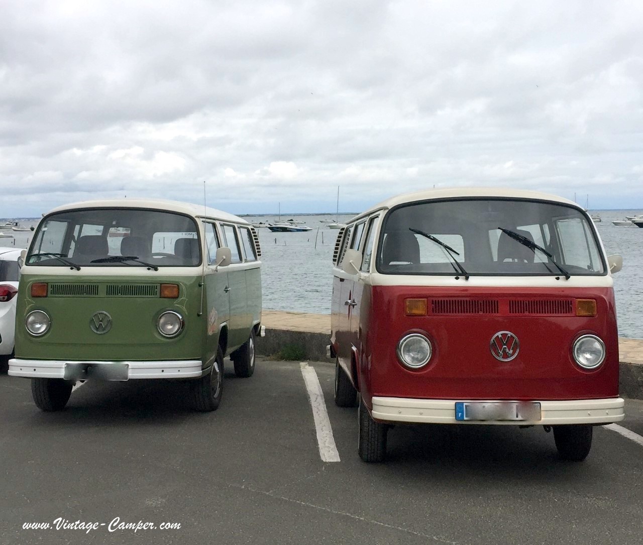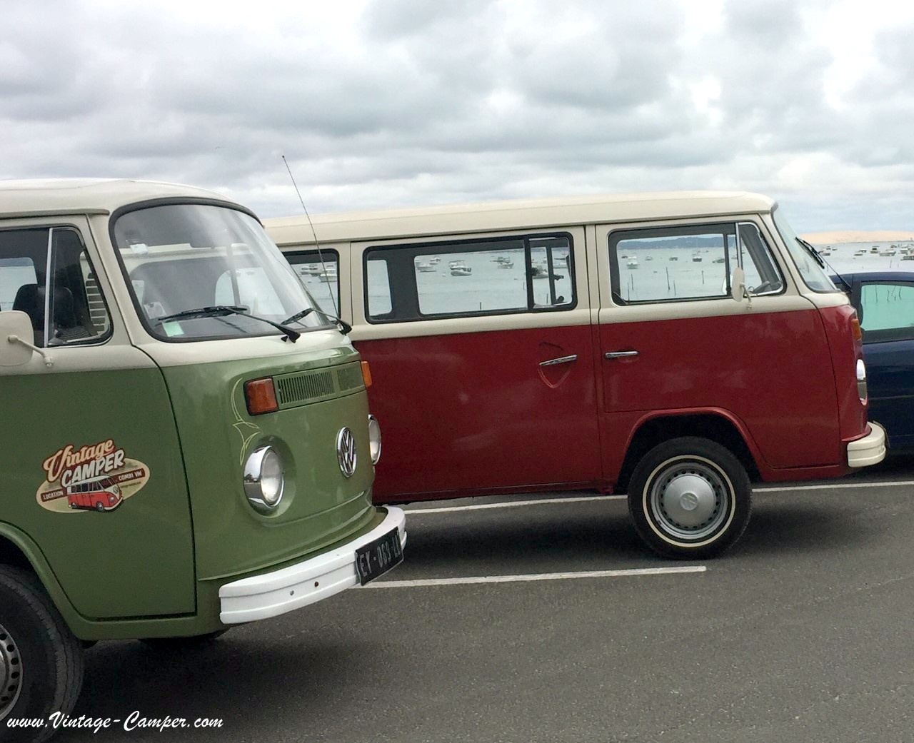 les 2minibus vintage devant la dune du Pyla sur le Bassin d’Arcachon