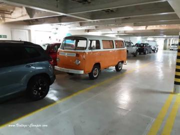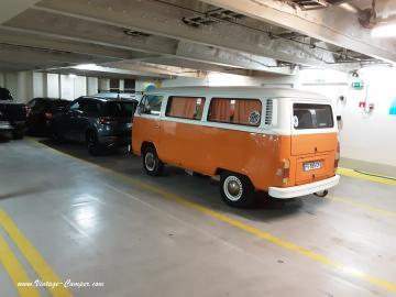 Il s’agit d’un combi minibus orange et blanc de 1978.