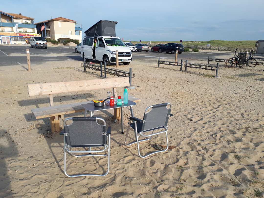 Cette année encore il est équipé de 4 couchage avec son toit qui se lève électriquement, du gaz, évier, frigo, chauffage stationnaire, sièges pivotants et aussi de sa table extérieure et de ses 2 chaises pour profiter pleinement de l’exterieur