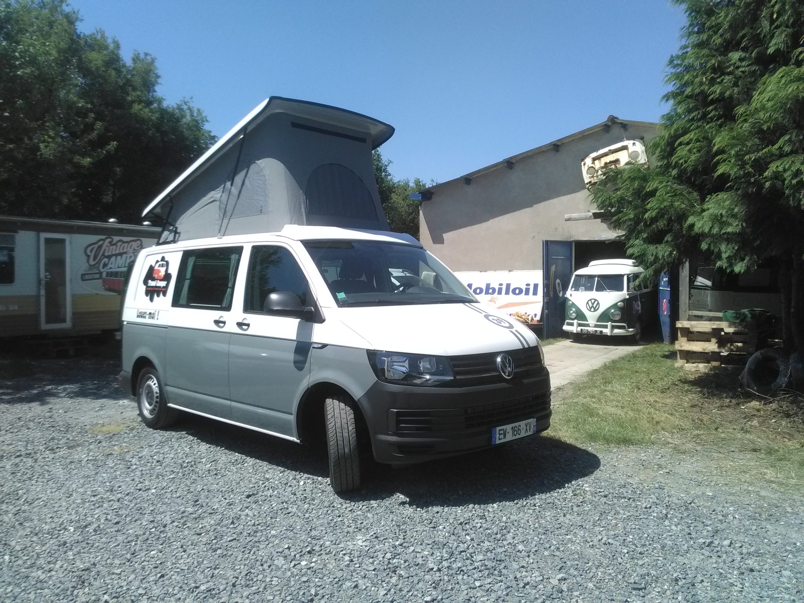 Sous l’oeil attentif de son arrière grand père j’ai nommé le combi split t1, voici le tout dernier transporter t6 tout confort de 2018 disponible a la location depuis notre agence Bordelaise située à côté de l’aéroport de Mérignac