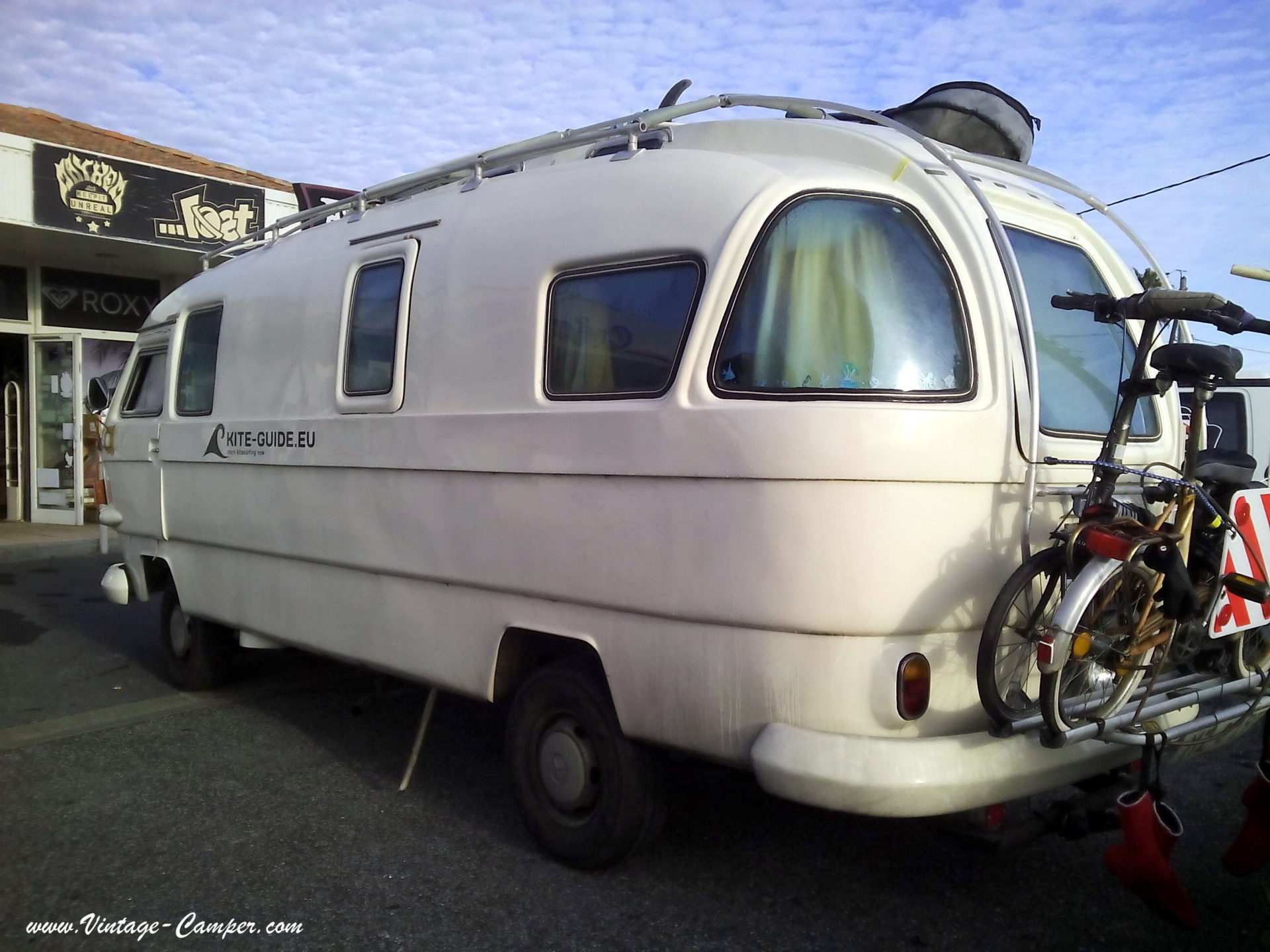 Un locataire avec un van aménagé transporter t6 california coast loué chez Travel Camper Bordeaux nous a envoyé 2 photos prises a côté de ce magnifique camping-car vintage allemand. Celui-ci est beaucoup plus grand qu’un combi volkswagen!