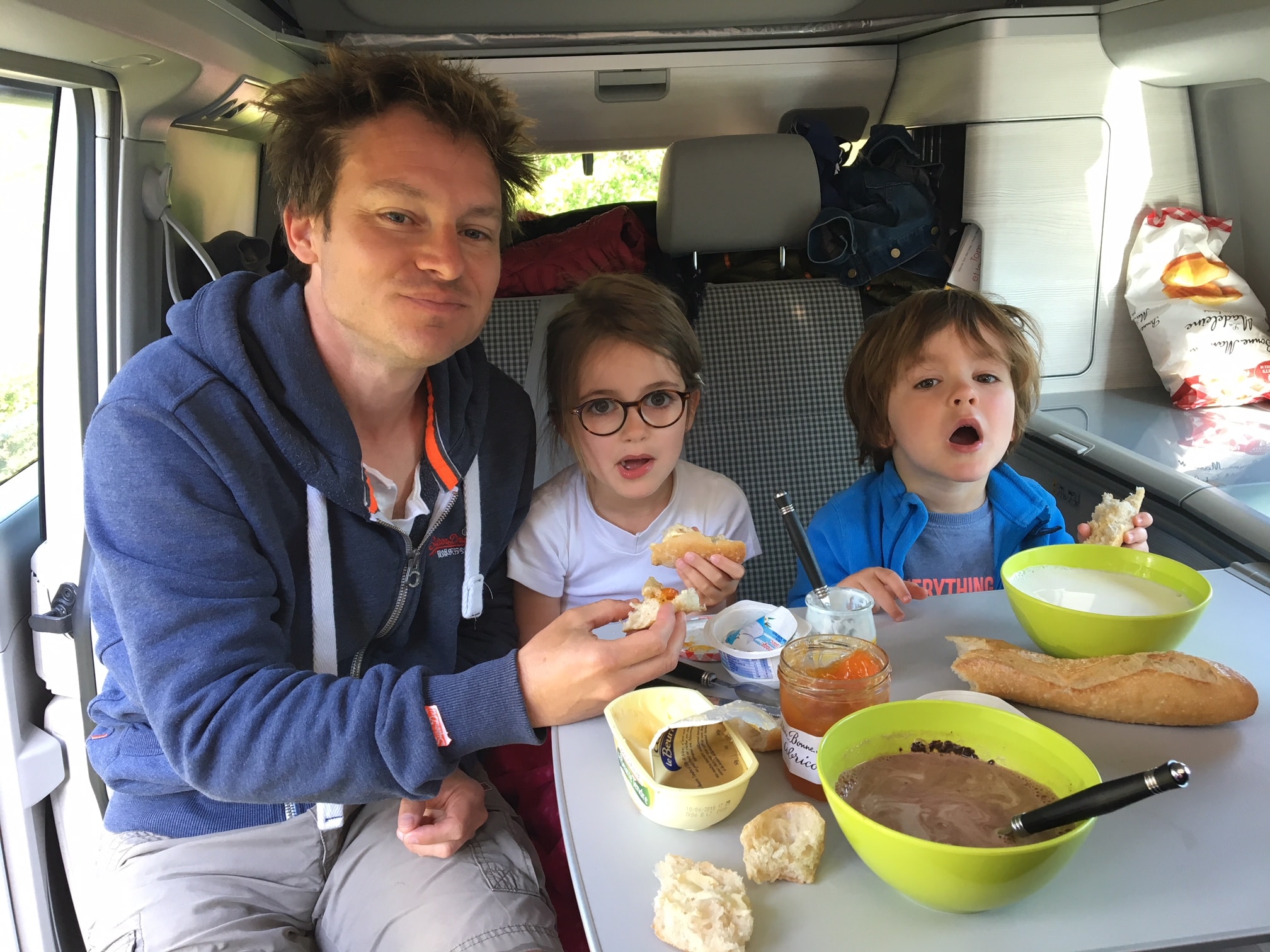 Grâce à son toit relevable vous pouvez dormir à 4 personne avec tout le confort d’un appartement , et la banquette relevée avec les 2 sièges avant retournés, vous pourrez prendre votre petits déjeuner ou repas à l’intérieur en famille!  et puis c’est vrai qu’en Aquitaine on a de belles routes!