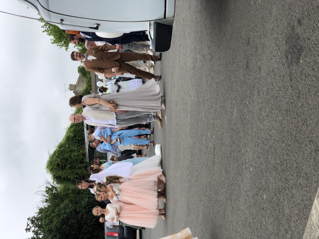 Arrivés au domaine « Dame Chouette », le combi vintage a pris sa place dans le décor bohème de la cérémonie laïque. Il a servi de toile de fond pour les photos de mariage, offrant des souvenirs uniques et inoubliables.