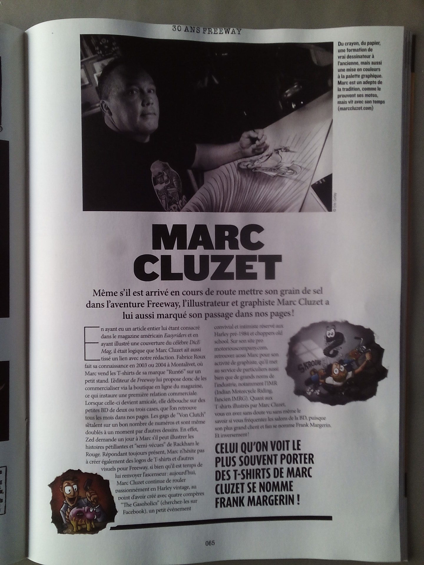 Aujourd’hui on ne parle pas de combi VW mais d’un monsieur a qui Freeway magazine (magazine Harley Davidson) consacre une double pas dans son numéro de mars…