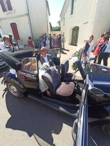 Au programme pour notre cabriolet vintage: transport des mariés jusqu’à la mairie, puis accompagnement au shooting photo des mariés au lac d’Arjuzanx et enfin retour sur Luglon !