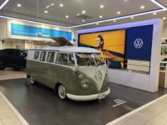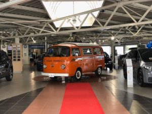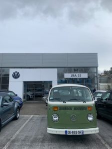 De plus, chez Volkswagen, Lormont notre magnifique combi split vintage a été au centre du showroom pour intriguer les clients ! Entre vintage et récent, il a su trouver sa place.