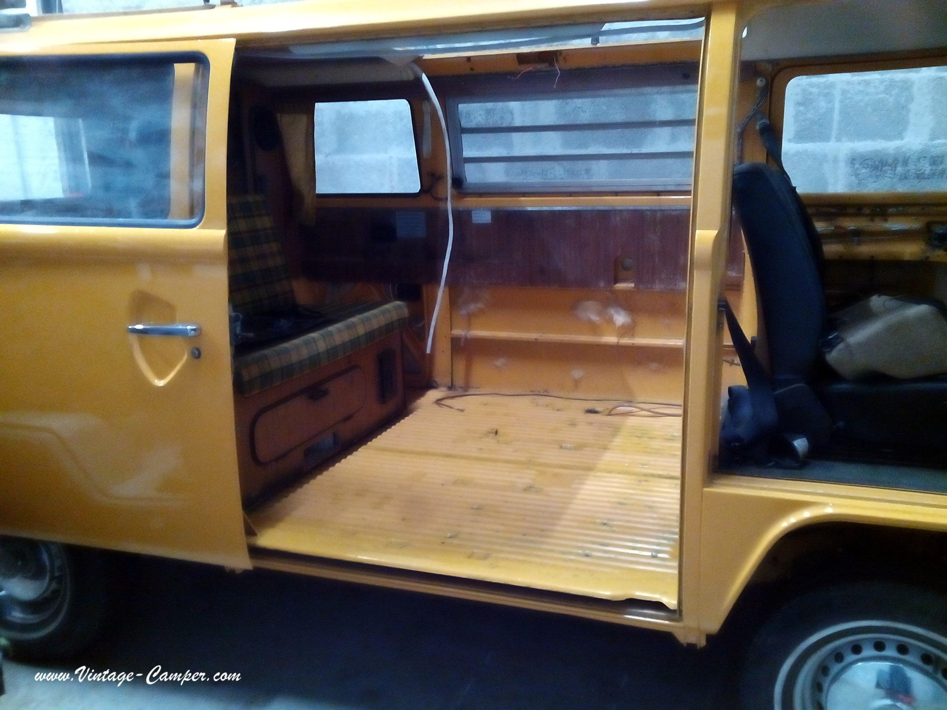 Après a voir sorti tout l’aménagement Westfalia, on s’aperçoit que les planchers sont nickels!