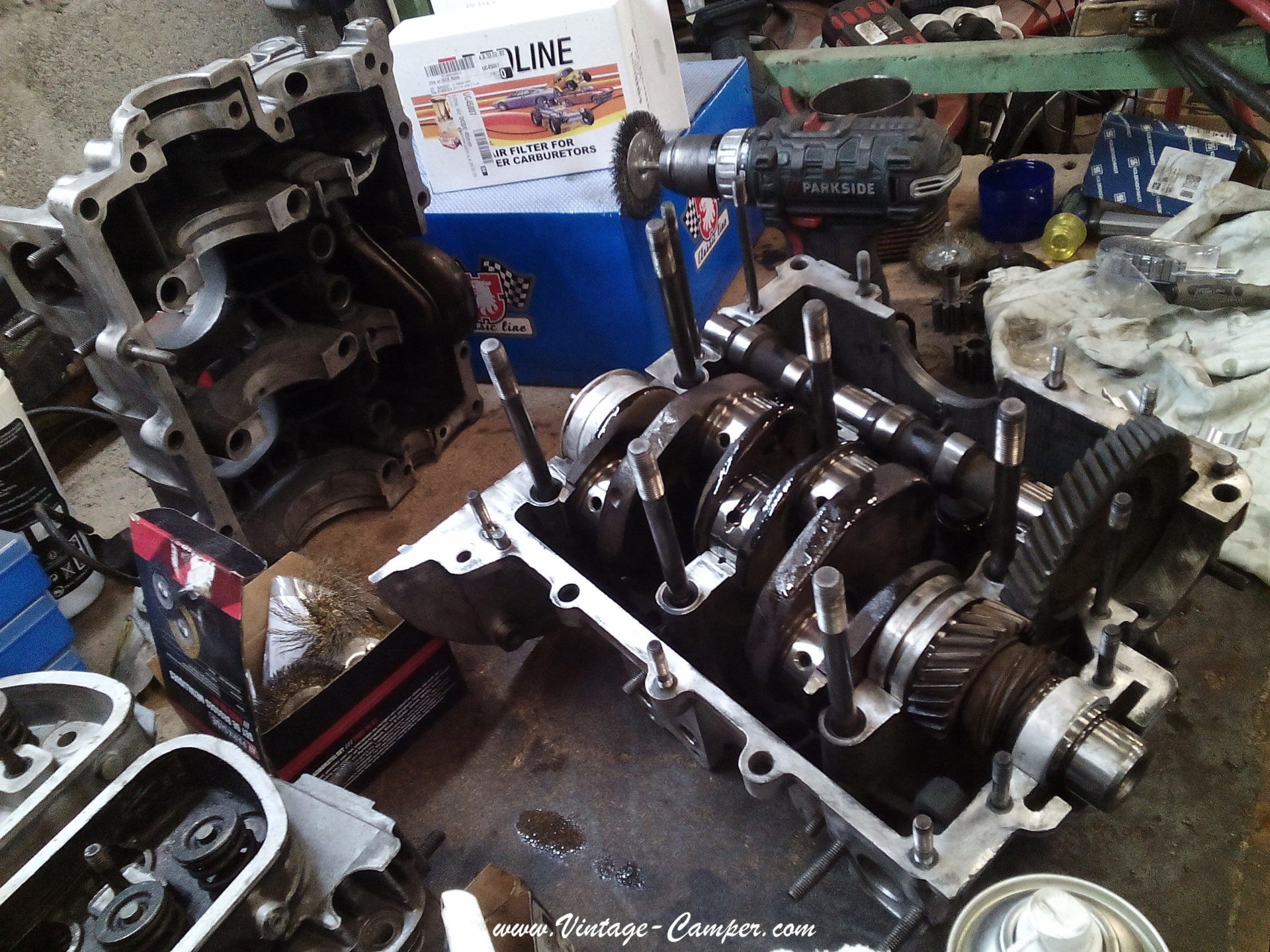Avant la pleine saison, on révise nos combi vw, par exemple on a décidé de refaire entièrement le moteur de notre combi minibus 9 places Neptune