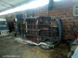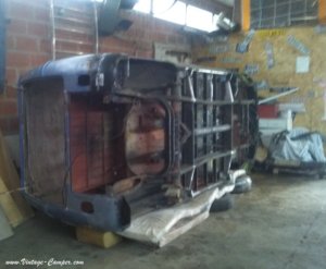 Aujourd’hui on a couché notre combi split sur le côté! il se repose doucement sur un matelas pour qu’on s’occupe du dessous!