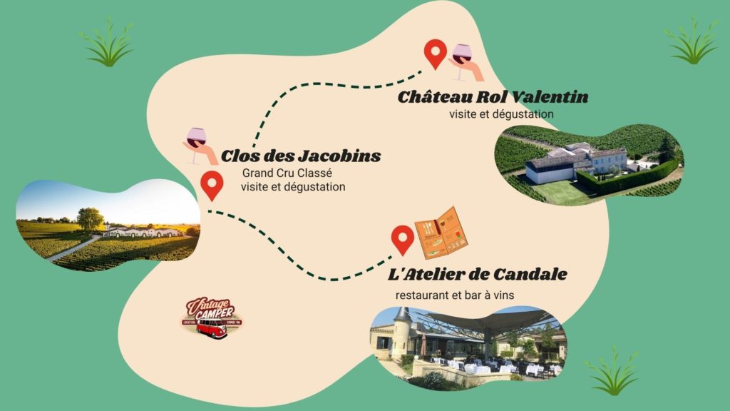 Saint-Émilion est réputé pour ses vignobles prestigieux et ses châteaux historiques. Avec Vintage Camper, vous aurez l’opportunité exclusive de visiter l’un ou les châteaux avec lesquels nous sommes partenaires. Ces domaines viticoles font partie des plus emblématiques de la région. Laissez-vous envoûter par l’histoire de la viticulture locale, tandis que nos guides vous dévoileront les secrets de la production vinicole.