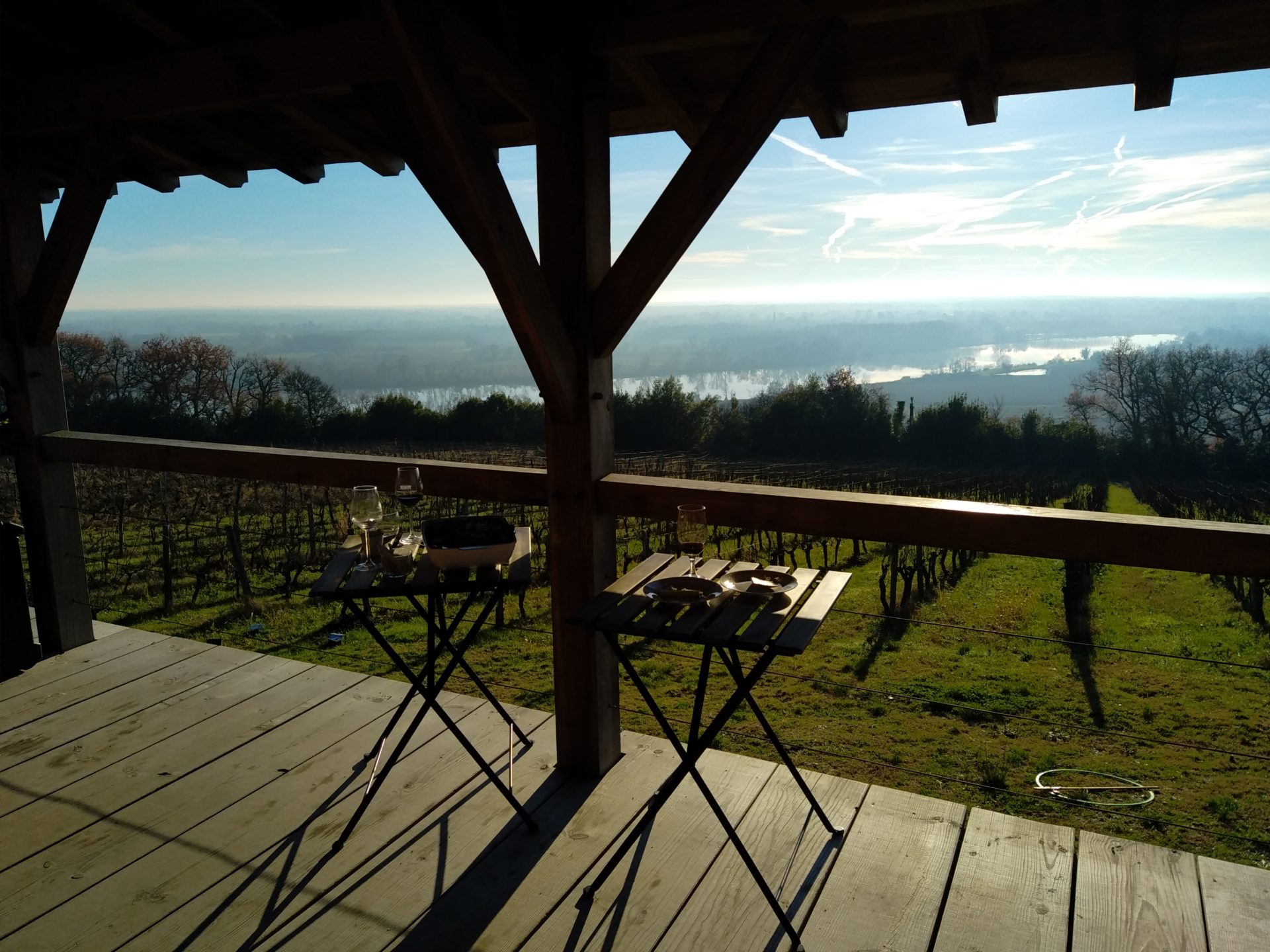 Cette cabane était privatisée pour l’évènement.Celle ci est vraiment perchée au milieu des vignes et domine la Garonne.