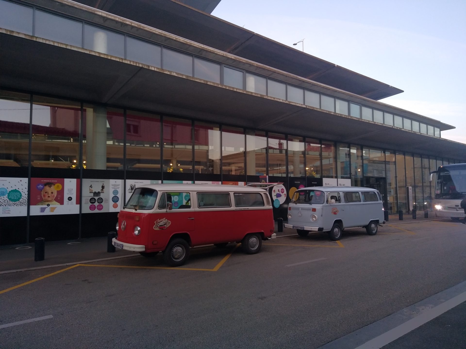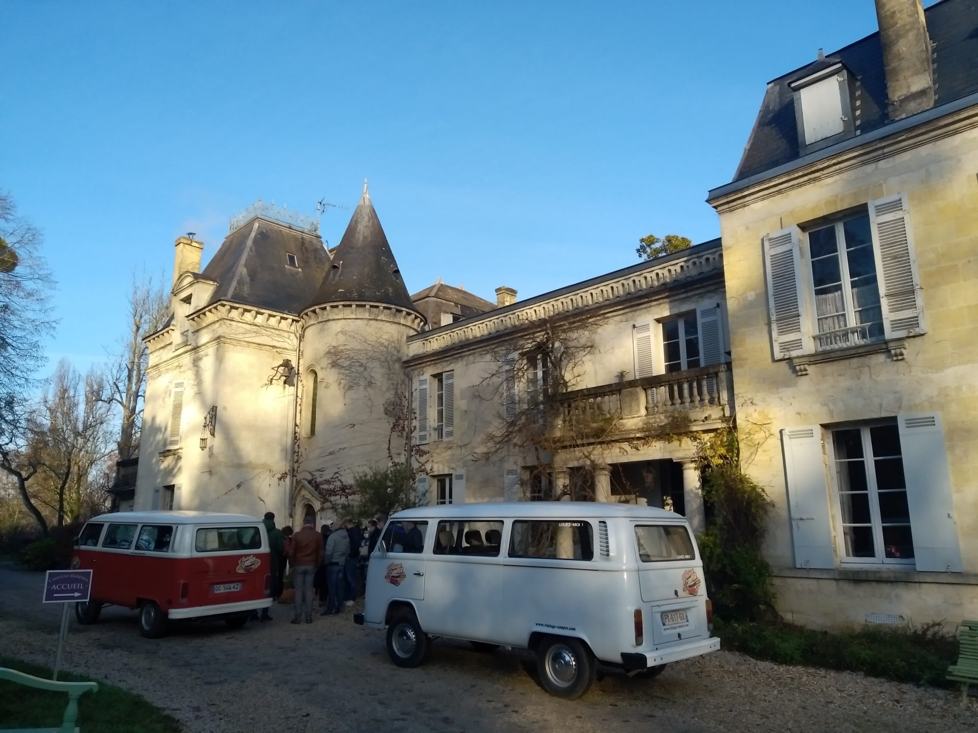 2 combi minibus vintage attendaient les participants à la gare de Bordeaux Saint Jean