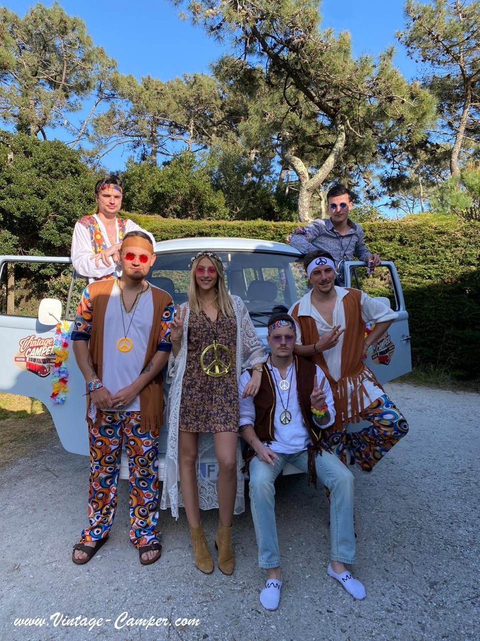 Quoi de mieux que d’arriver en combi Volkswagen a une soirée déguisée ayant pour thème les hippies?