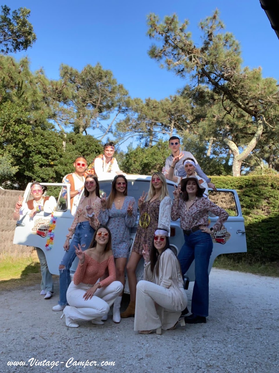 C’est le cas de cette bande de copains nous ayant loué un combi vintage pour se rendre à une soirée d’anniversaire au Cap Ferret!