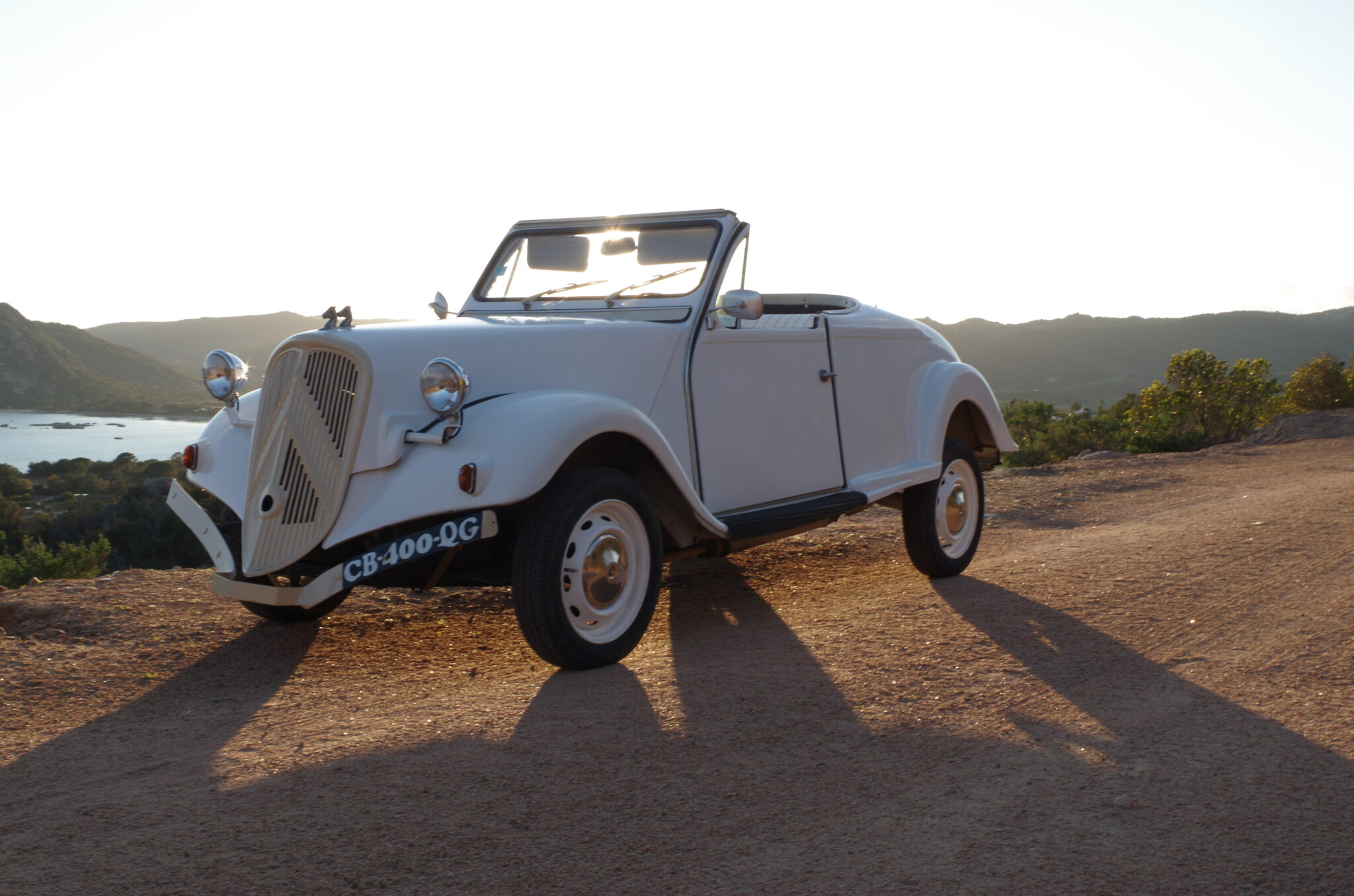 Chez Vintage Camper Corse, vous trouverez en outre les classiques du littoral français.. évidemment la Mehari, la Mini-Moke, mais aussi pour des occasions particulières, voyage en amoureux ou bien mariage, notre sublime 2cv Hoffmann !