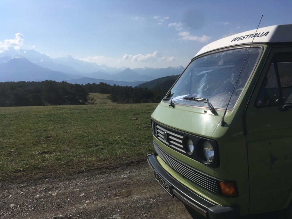 On s’arrête dans la campagne pour prendre le temps de faire quelques photos de Savane, le combi t2 minibus de…