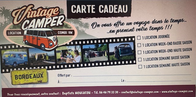 Des cartes cadeaux pour les fêtes chez Vintage Camper