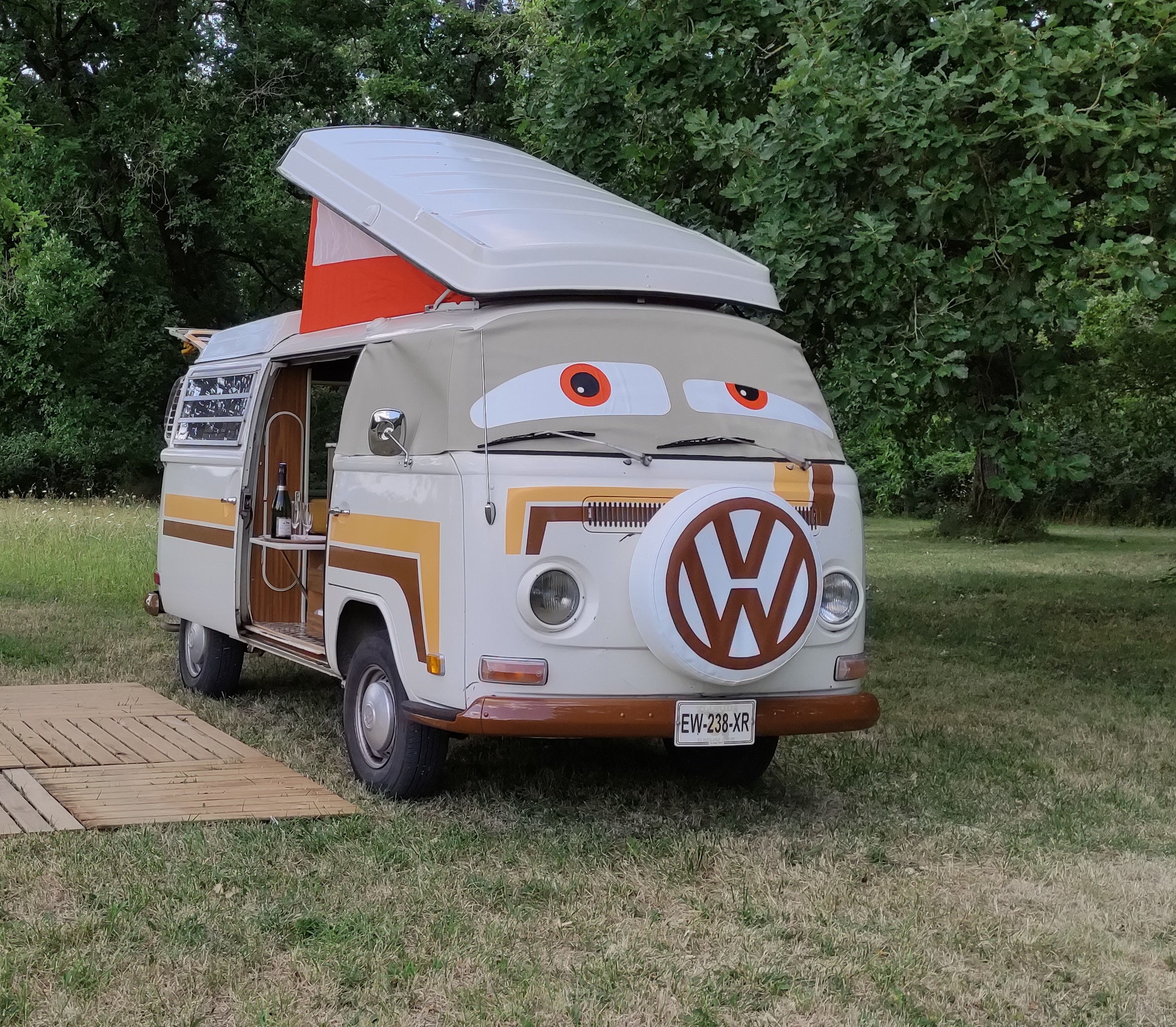 Nos combis aménagés sont des modèles emblématiques de Volkswagen, soigneusement restaurés et équipés pour offrir tout le confort nécessaire. Ils peuvent accueillir jusqu’à 4 personnes, parfait pour les escapades romantiques, une balade au milieu des vignobles, des chateaux de la Loire, ou pour ajouter une touche rétro-vintage à votre événement spécial en Touraine.