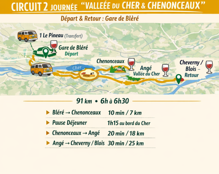 🍇 CIRCUIT 2 WINE TOUR – JOURNÉE “VALLÉE DU CHER + CHENONCEAUX”