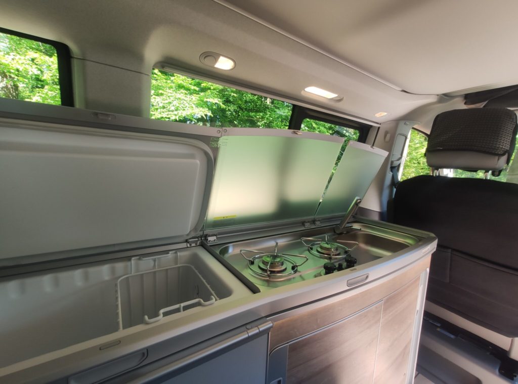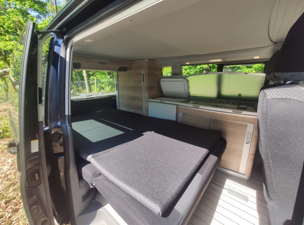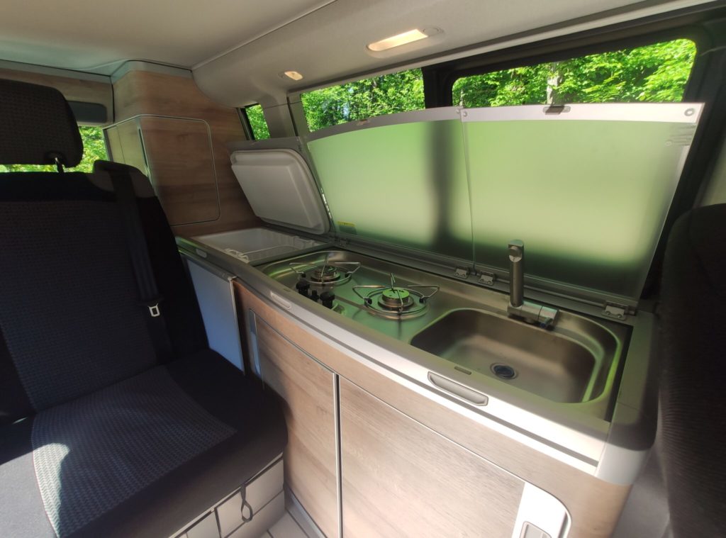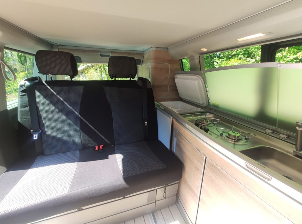 Comme tous les transporter T6.1 California Coast, ce modèle est tout équipé pour 4 personnes. En plus des 2 feux au gaz, de l’évier, d’un véritable frigo,d’un chauffage stationnaire, de nombreux rangements, ce transporter t6.1 possèdent de nombreux rangements.
