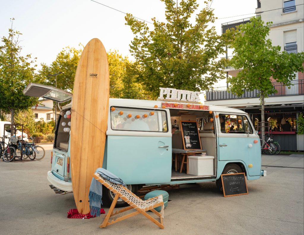 Venez découvrir notre Combi PhotoBooth sur l’agence de Bordeaux – Biganos ! Vos invités ne pourront plus s’en passer ! Anniversaire, mariage, Baptême, Gender Reveal, toutes les occasions sont bonnes pour marquer le coup et repartir avec sa photo souvenir – de façon originale et rétro !
