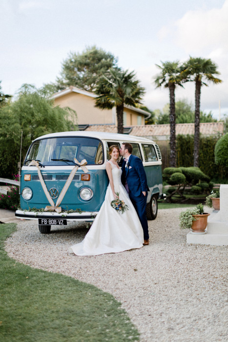 La saison des mariages n’est pas encore terminée, en voici un bel exemple avec ce beau couple s’embrassant devant notre combi vw neptune!