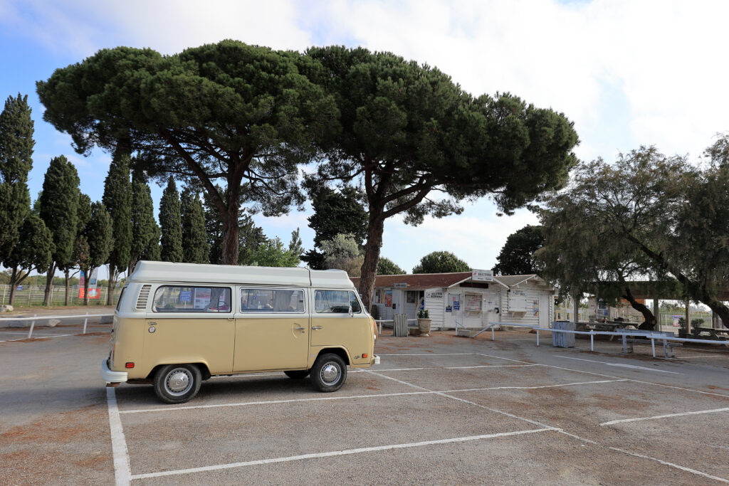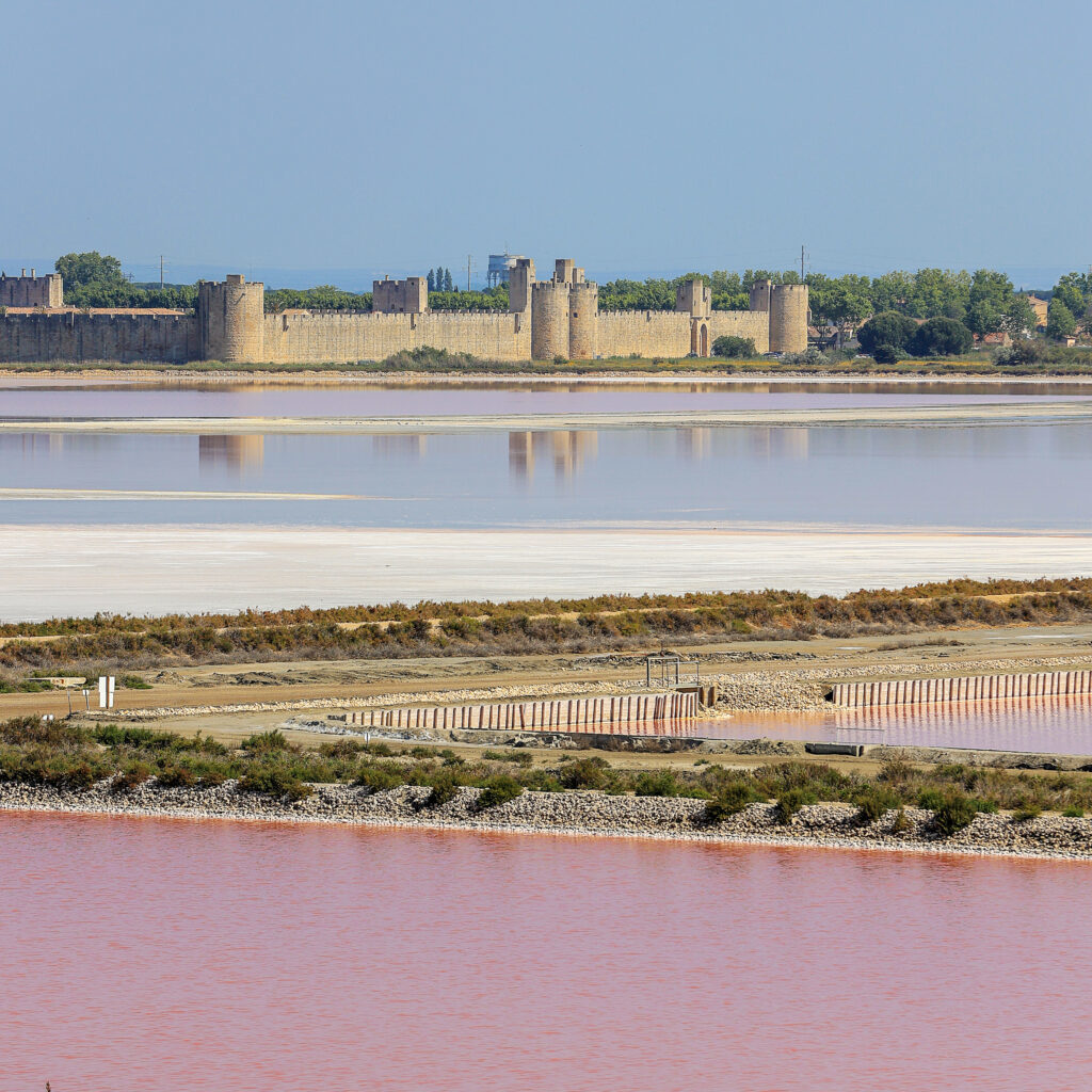 Tout proche d’Aigues-Mortes , à 40 min d’Arles et en bordure du Parc Naturel de la Camargue, les Salins peuvent être une halte pour une visite rapide ( compter aux alentours d’1H30 à pied ou en train , pas loin de 2h30 en vélo ) ou un lieu pour passer la nuit dans un cadre exceptionnel en profitant de votre combi pour parcourir les salins dans une ambiance de liberté totale.